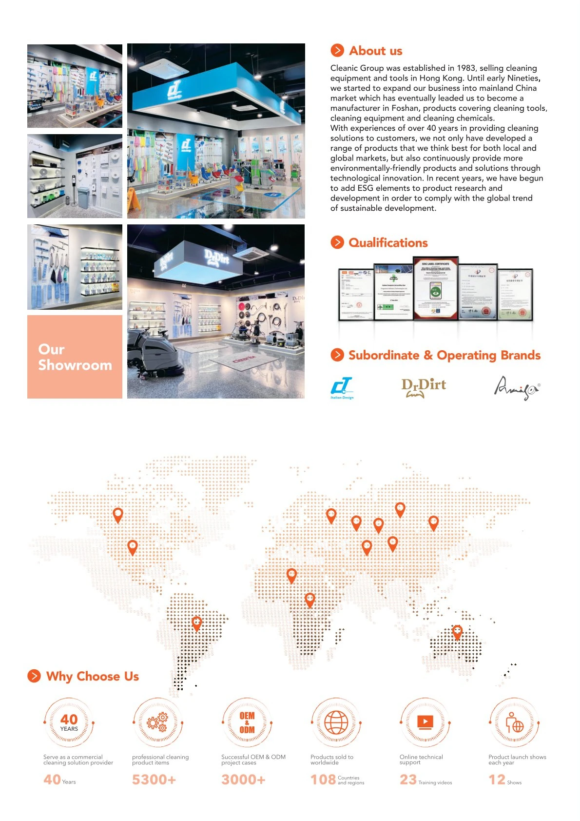 Produk utama: Troli pembersih, mesin pembersih, penyapu jendela, penyapu lantai, bahan kimia pembersih
